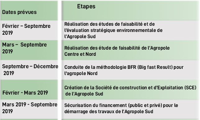 Ces travaux préparatoires menés ont permis de mobiliser des partenaires techniques et financiers tels que la Banque Africaine de Développement (BAD) et la Banque Mondiale, qui ont confirmé leur intérêt à financer les projets d’agropoles du PSE. Par ailleurs, le modèle de gestion de l’Agropole Sud, les besoins en financement attendus de l’Etat et du Privé ainsi que les impacts socio-économiques ont été identifiés.